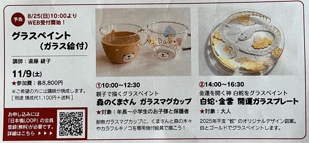 耐熱ガラスマグカップに、くまさんと森の木々やカラフルキノコを専用焼付絵具で描こう!