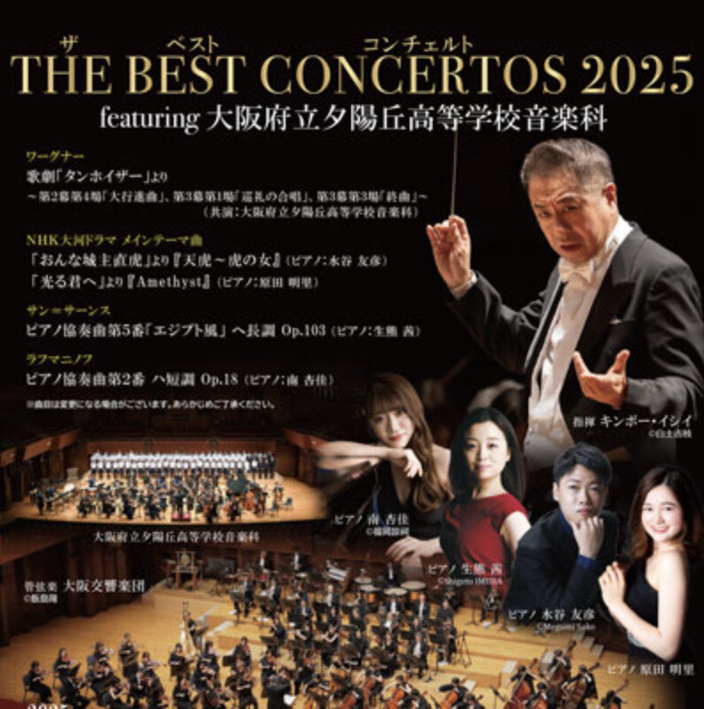 AIによるイベントの概要説明大阪府立高校で唯一音楽科を設置する夕陽丘高等学校音楽科と、同校出身のすばるイブニングコンサート歴代出演者が、キンボー・イシイ指揮、大阪交響楽団と共演します。