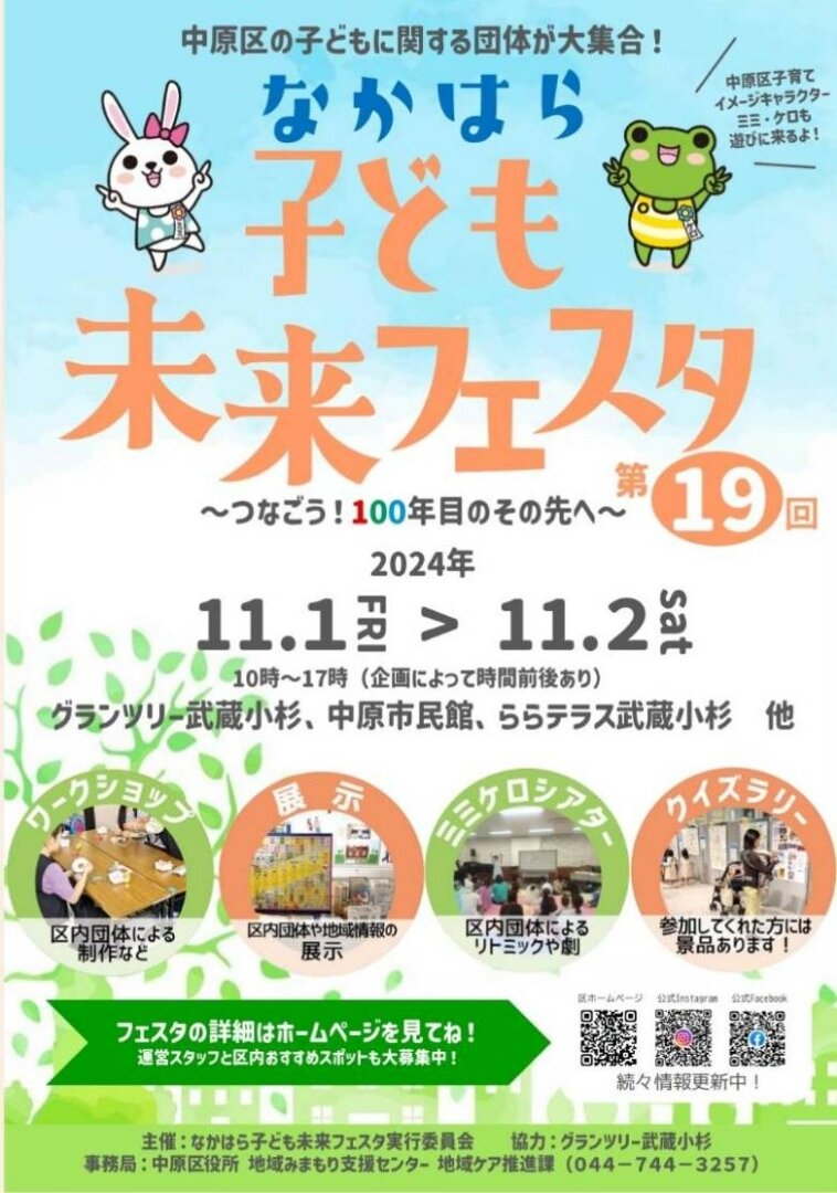 #なかはら子ども未来フェスタ #中原区役所 #イベント #地域イベント #親子イベント #子連れイベント #平日イベント #週末イベント #ワークショップ #クイズラリー #ステージ #グランツリー武蔵小杉 #中原市民館 #川崎市 #中原区 #武蔵小杉 #子連れ #子どもとお出かけ #親子で楽しむ #子育て #子育てサポート情報 #子育て支援 #子育て情報