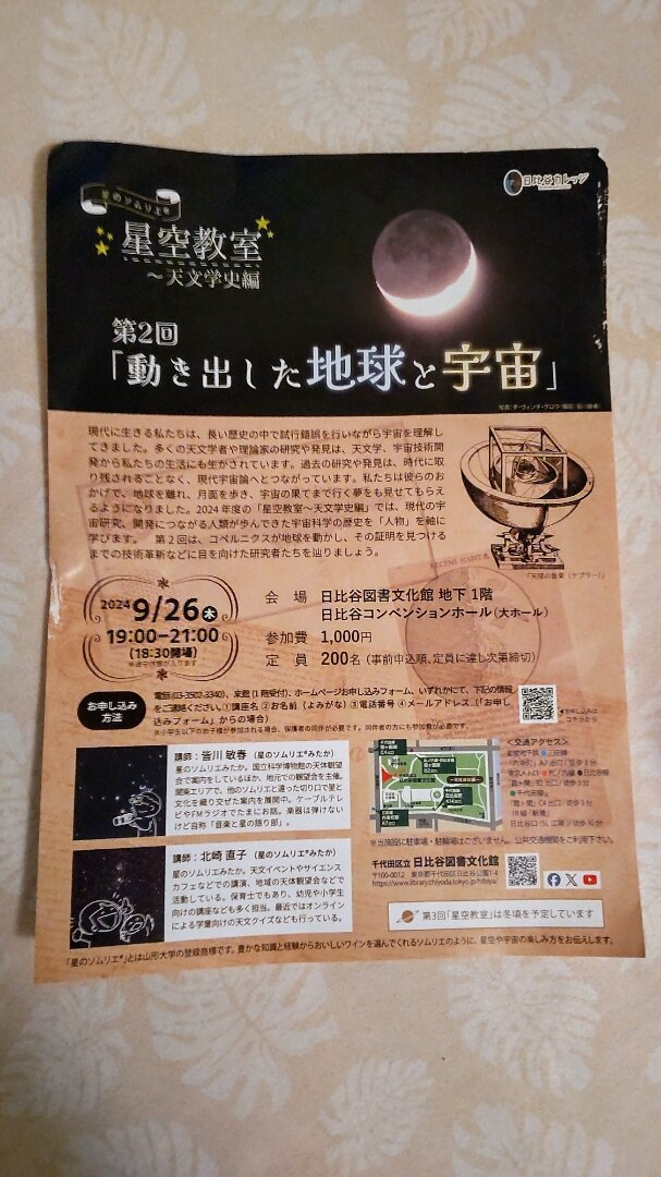 現代の宇宙研究、開発につながる人類が歩んできた宇宙科学の歴史を、人物を軸に学びます。第2回は、コペルニクスが地球を動かし、その証明を見つけるまでの技術革新などに目を向けた研究者たちをたどります。参加費は1000円。定員は200名で、事前申し込み順で、定員に達し次第締め切り。