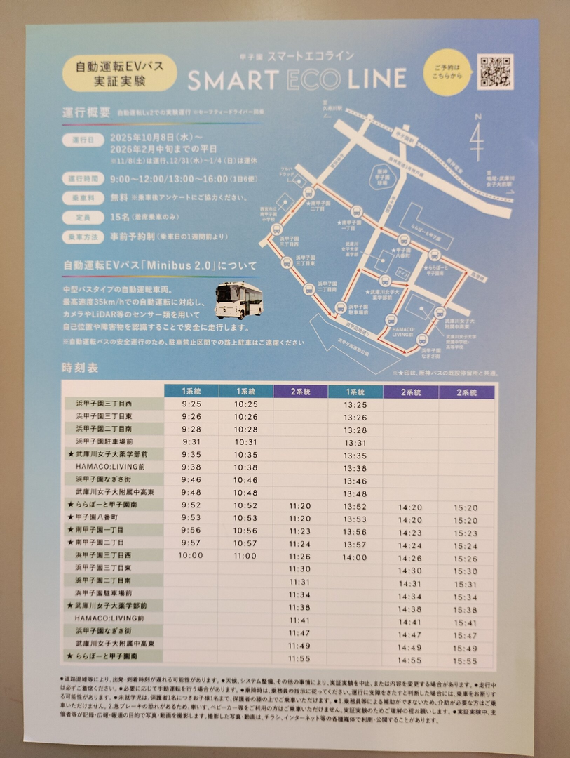 運行期間は2025年10月8日から2026年2月中旬までの平日で、運行時間は9:00-12:00と13:00-16:00です。乗車は無料で、事前予約制です。