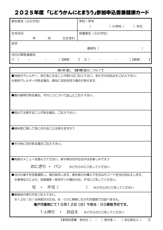 *参加ができなくなった場合は、 分かった時点でに児童館までご連絡ください。 前日までは全額返金しますが、 当日キャンセルは全額返金できない場合があります。 ご了承ください。