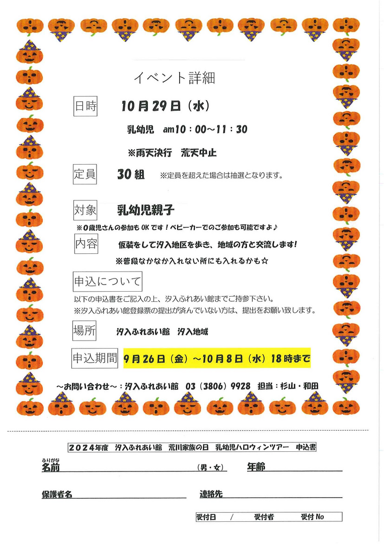 申込について: 以下の申込書をご記入の上、 汐入ふれあい館までご持参下さい。