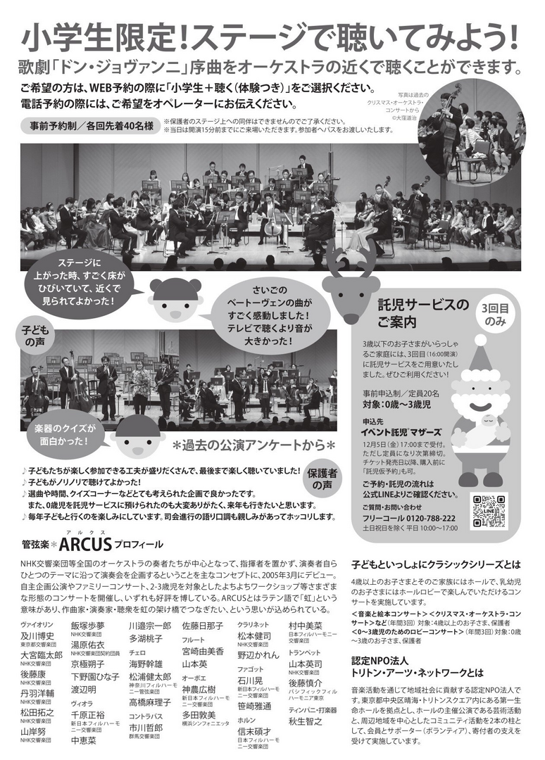 同じプログラムによる10:30開演、13:30開演、16:00開演の3回公演なのでお好きな時間帯を選べます!