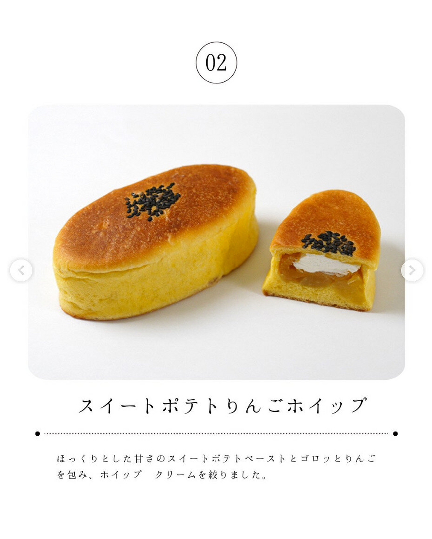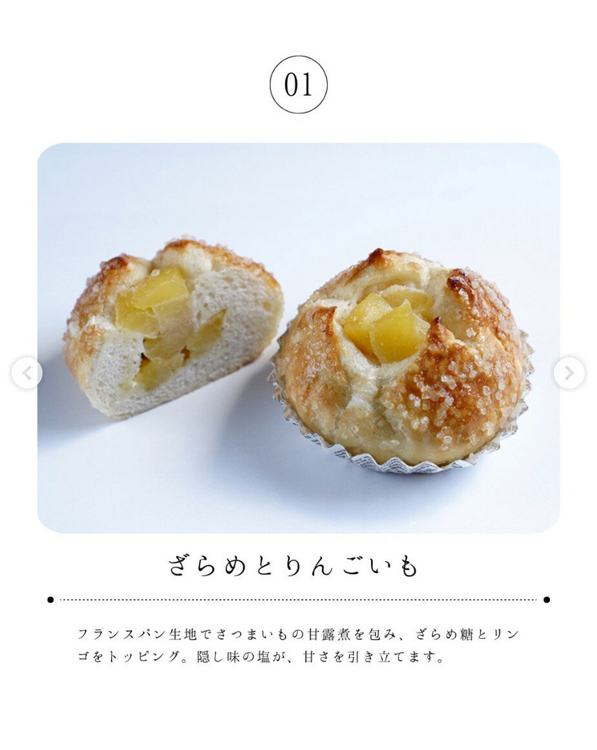 フランスパン生地でさつまいもの甘露煮を包み、ざらめ糖とリンゴをトッピング。隠し味の塩が、甘さを引き立てます。