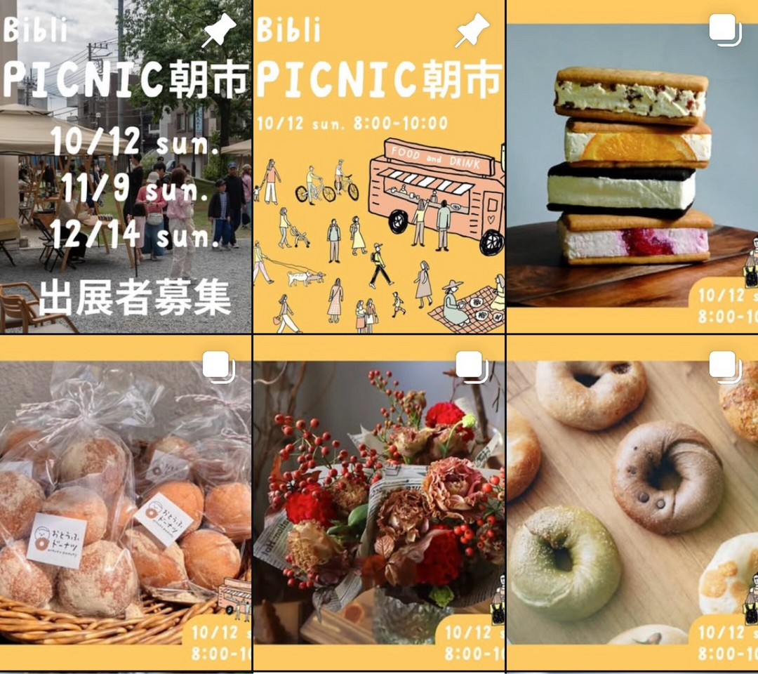 ピクニックに連れて行きたくなるようなフードやドリンク、花や雑貨などちょっとした嬉しいものたちが並ぶ、朝限定のマーケットです。