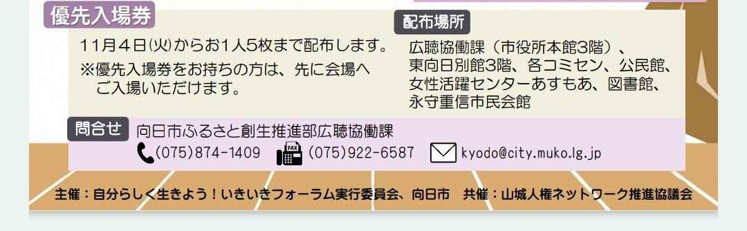 主催: 自分らしく生きよう! いきいきフォーラム実行委員会、 向日市