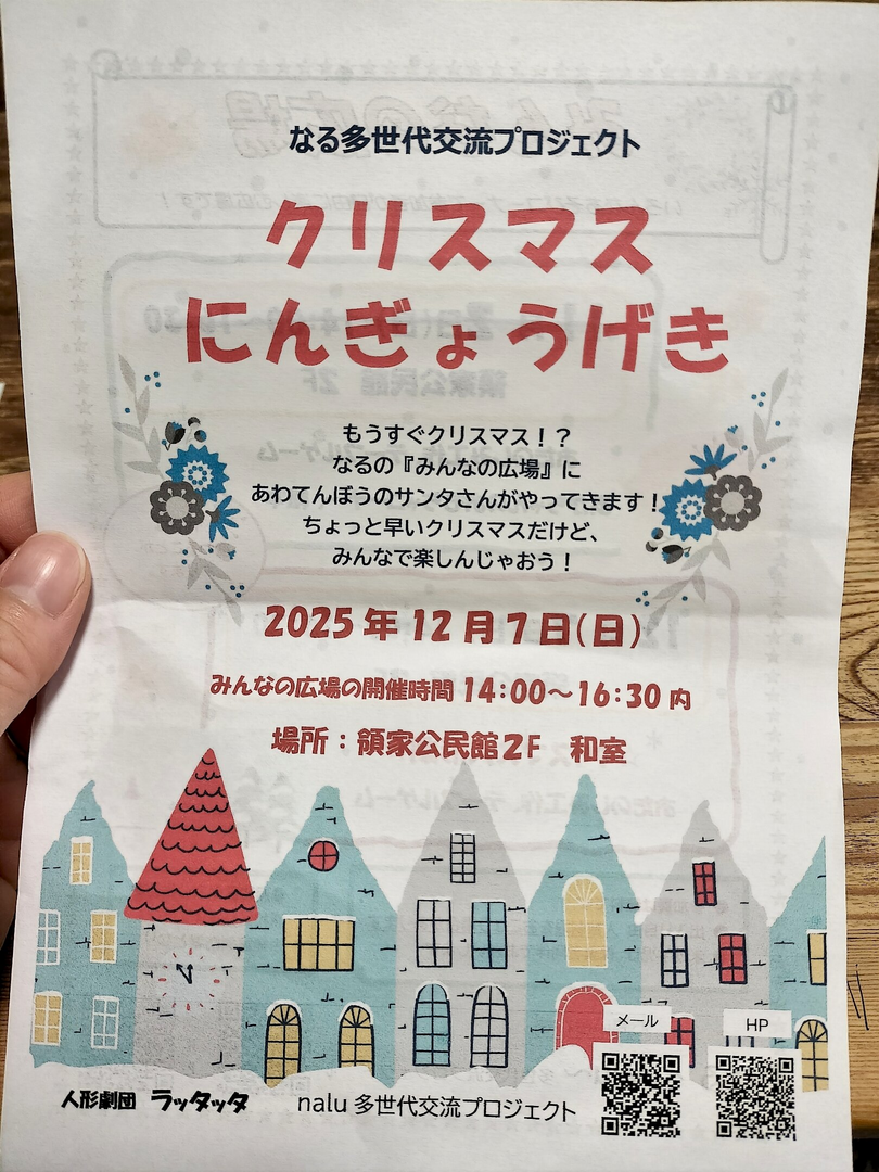 多世代交流をコンセプトに地域密着のイベントを開催されている【なる 〜nalu〜】からのクリスマスイベントのご案内です。
