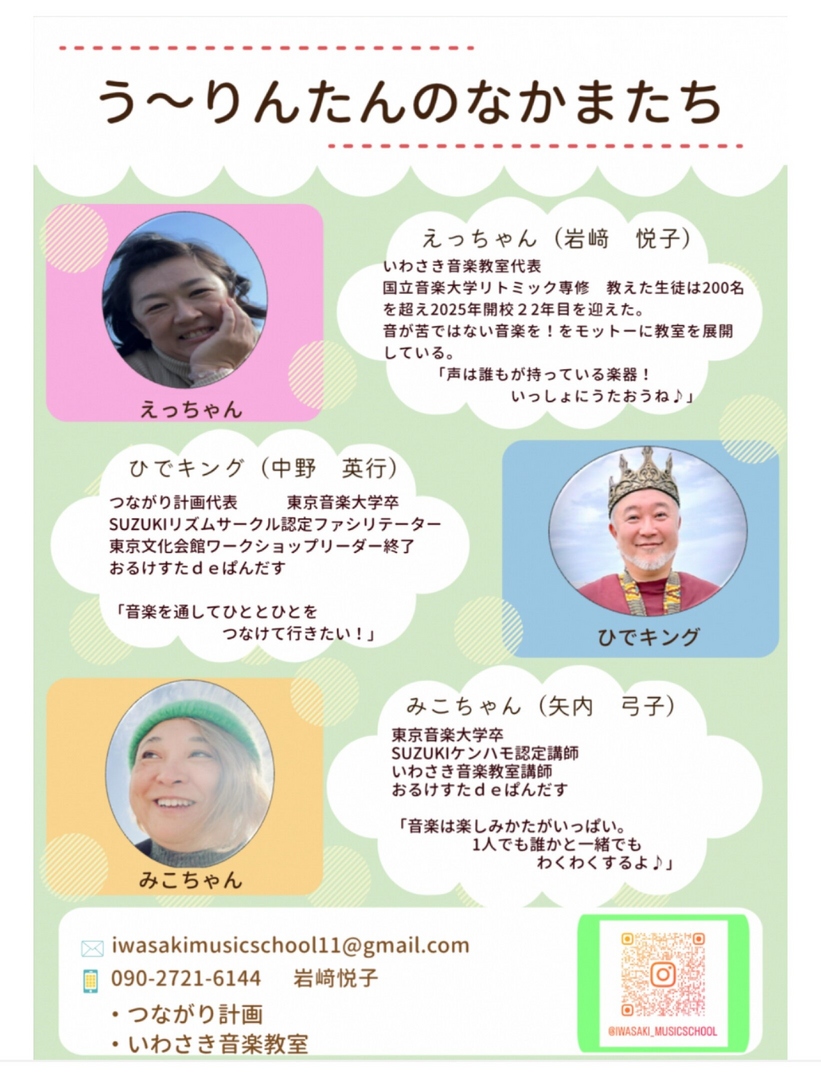 お1人で、お2人で、ファミリーで、お友達と、みんなで音を楽しむイベントです。
