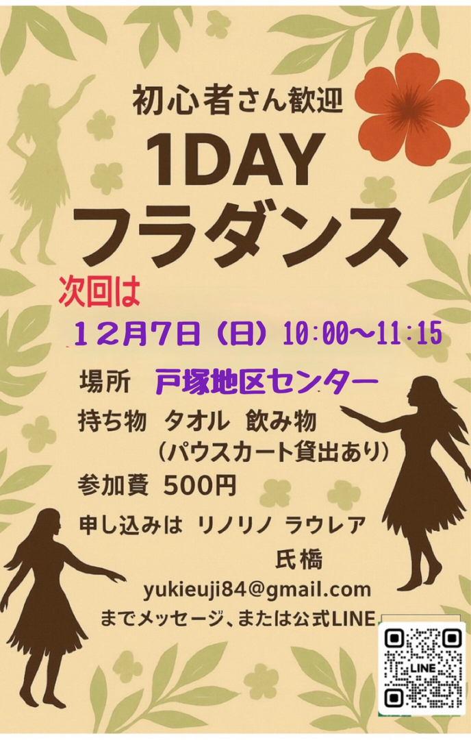 初心者さん、未経験者さんも歓迎します。内容は毎回変わりますので、続けて参加しなくても安心です。パウスカートお貸しします。お問い合わせなどお気軽に!
