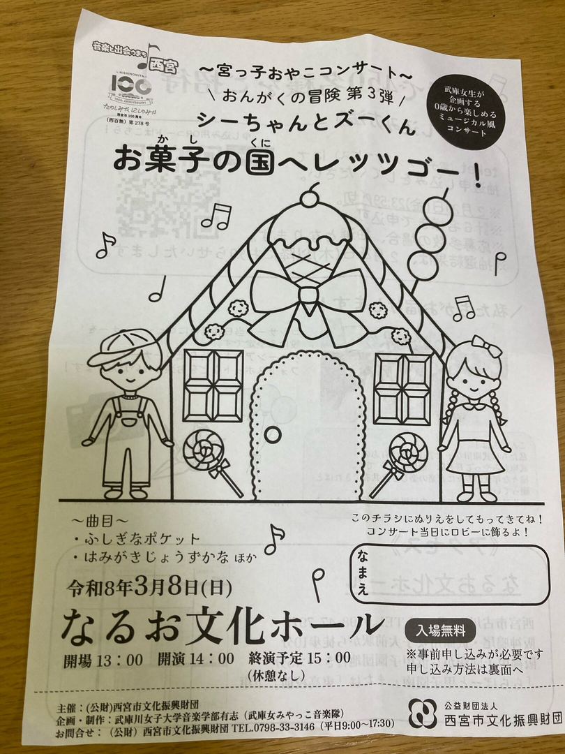 武庫川女子大学の音楽隊によるミュージカル風コンサート「シーちゃんとズーくん お菓子の国へレッツゴー!」