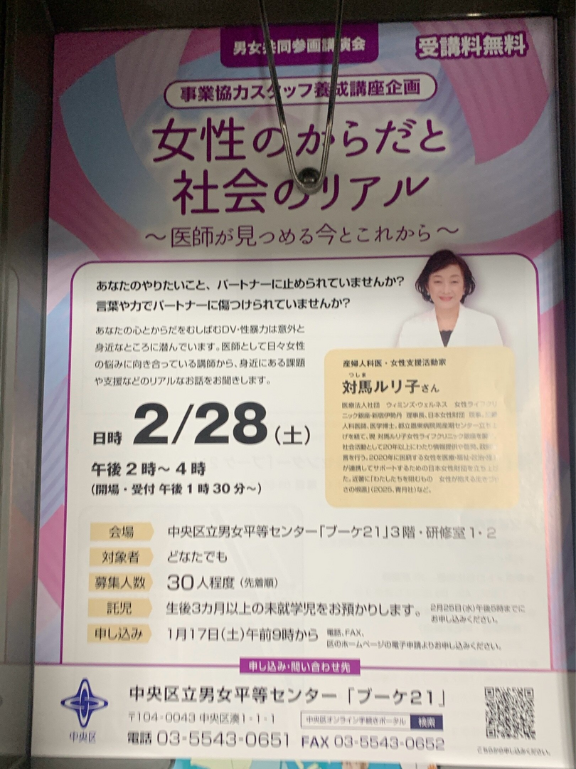 会場: 中央区立男女平等センター「ブーケ21」3階研修室 1.2