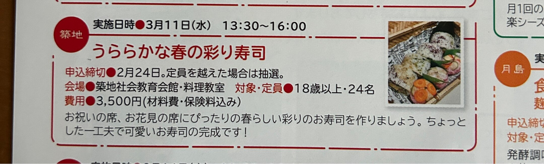 会場●築地社会教育会館・料理教室 対象・定員●18歳以上・24名