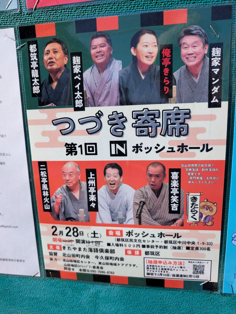 北山田寄席の拡大版! 古典落語・創作落語の饗宴です。「笑門来福」を存分に味わってください。