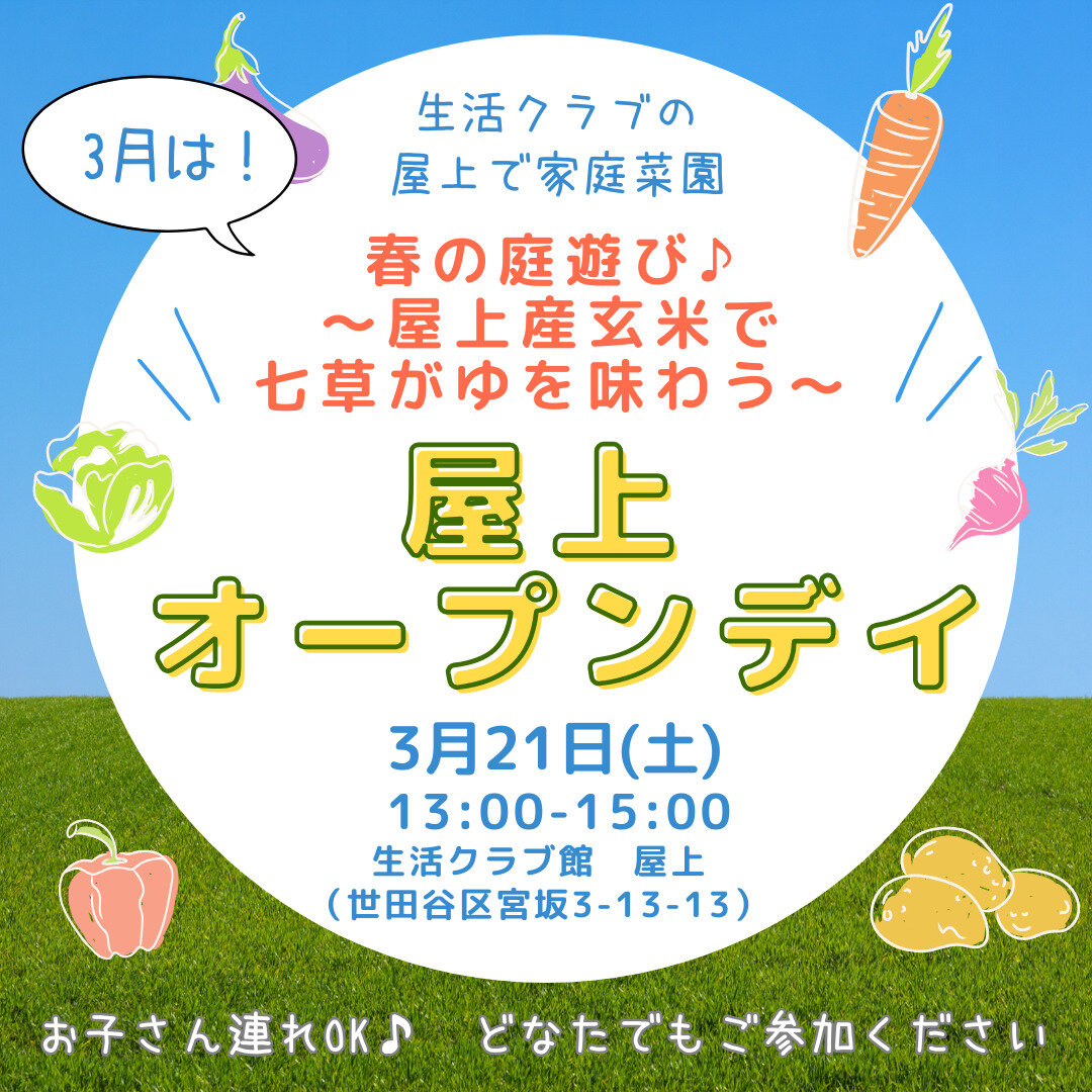 ★屋上オープンデイ「春の庭遊び♪~屋上産玄米で七草がゆを味わう~」★