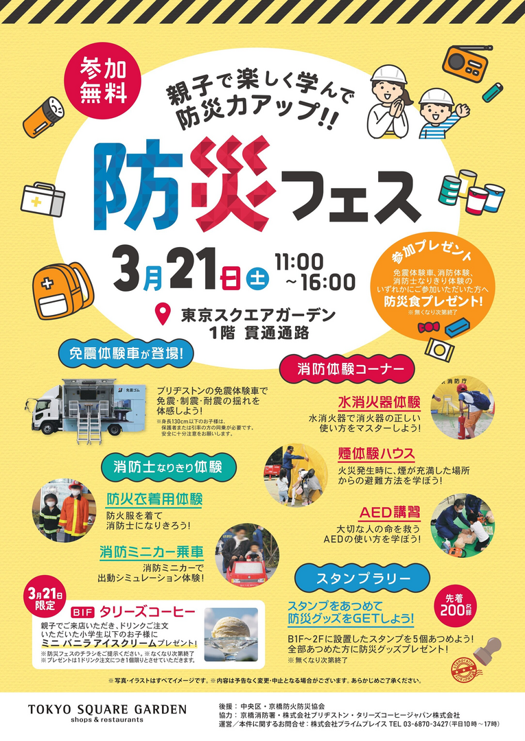 協力: 京橋消防署 株式会社ブリヂストン タリーズコーヒージャパン株式会社