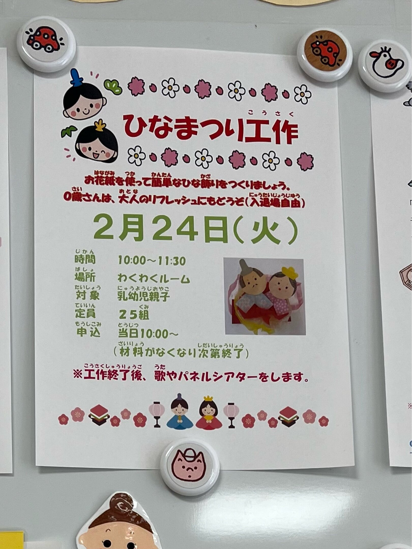 ※工作終了後、歌やパネルシアターをします。