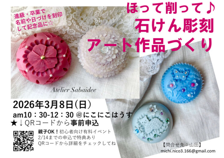 🧼やさしい香りの石けんでかわいいアートを2つ作れるソープカービング体験を開催します🌸