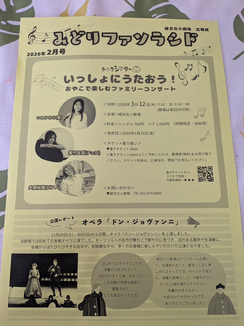 緑文化小劇場で親子で楽しめるコンサートが開催されます♪