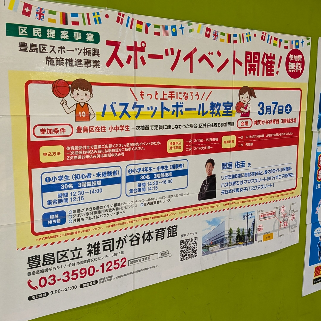 オリンピアン間宮佑圭さんによるバスケットボール教室を実施いたします!