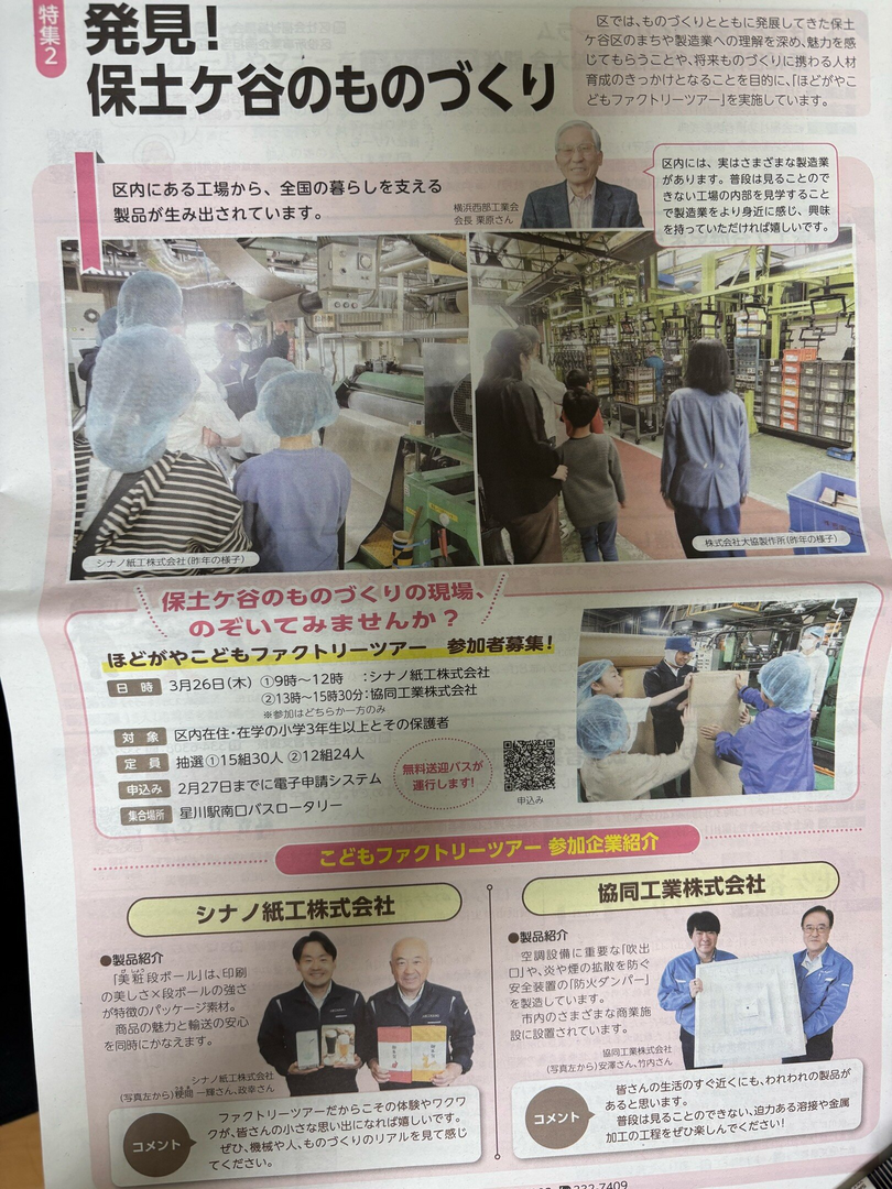 ものづくりとともに発展してきた保土ケ谷区のまちや製造業への理解を深め、魅力を感じてもらうことや、将来ものづくりに携わる人材育成のきっかけとなることを目的に、「ほどがやこどもファクトリーツアー」を実施します。