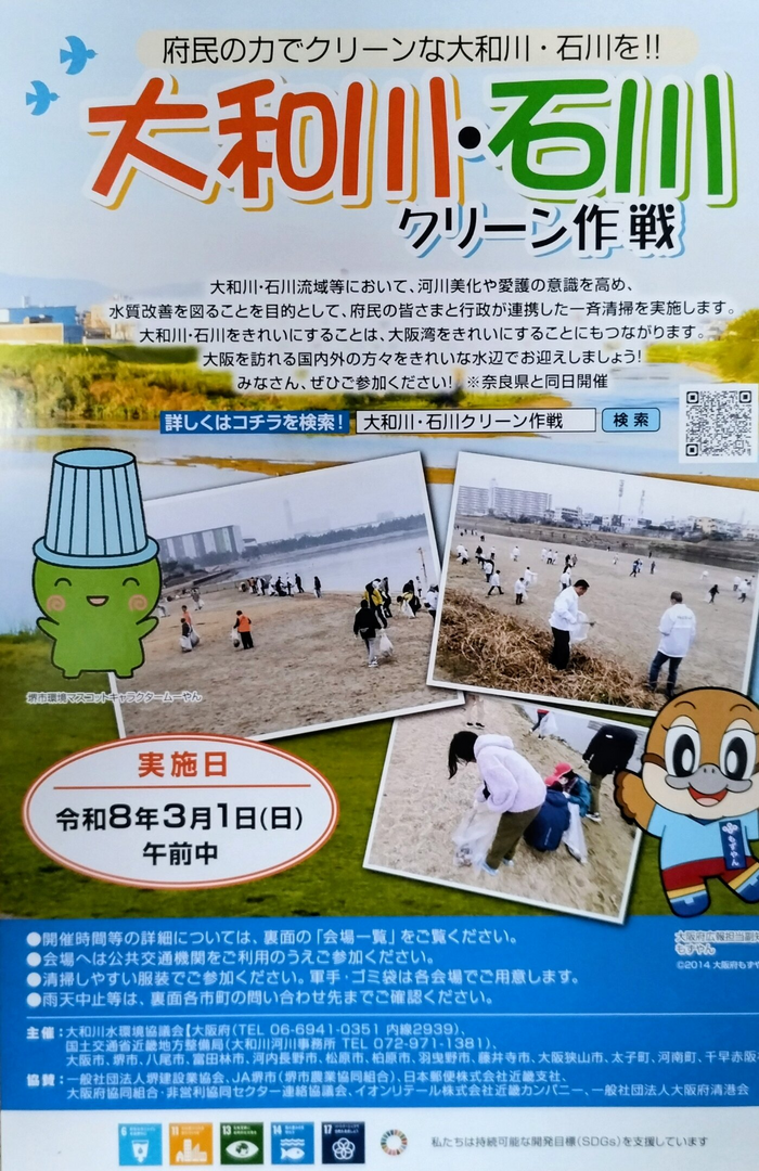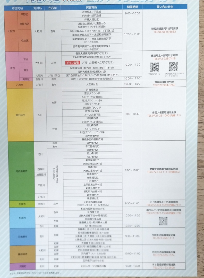 大和川水環境協議会 【大阪府(TEL 06-6941-0351 内線2939)、大阪府広報担当課