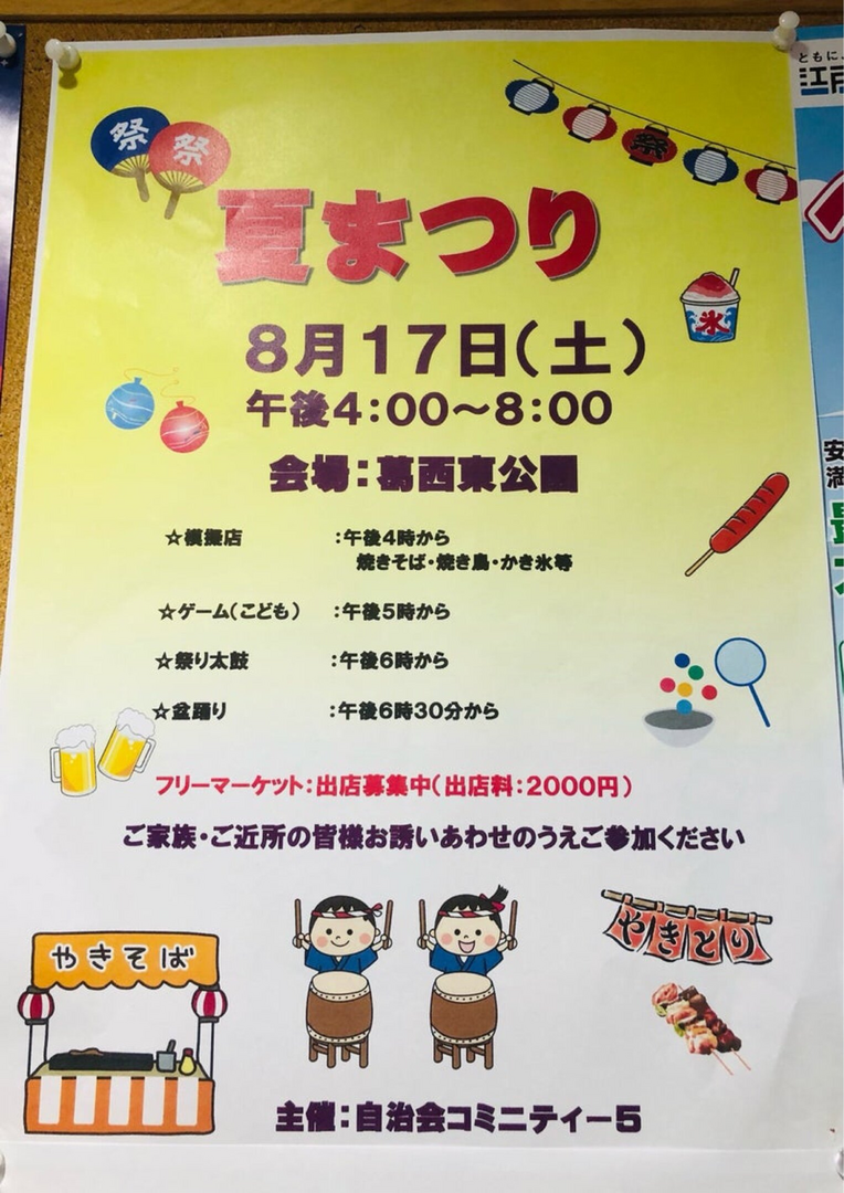 葛西駅近で夏まつり。電車がよく見える公園での開催です。