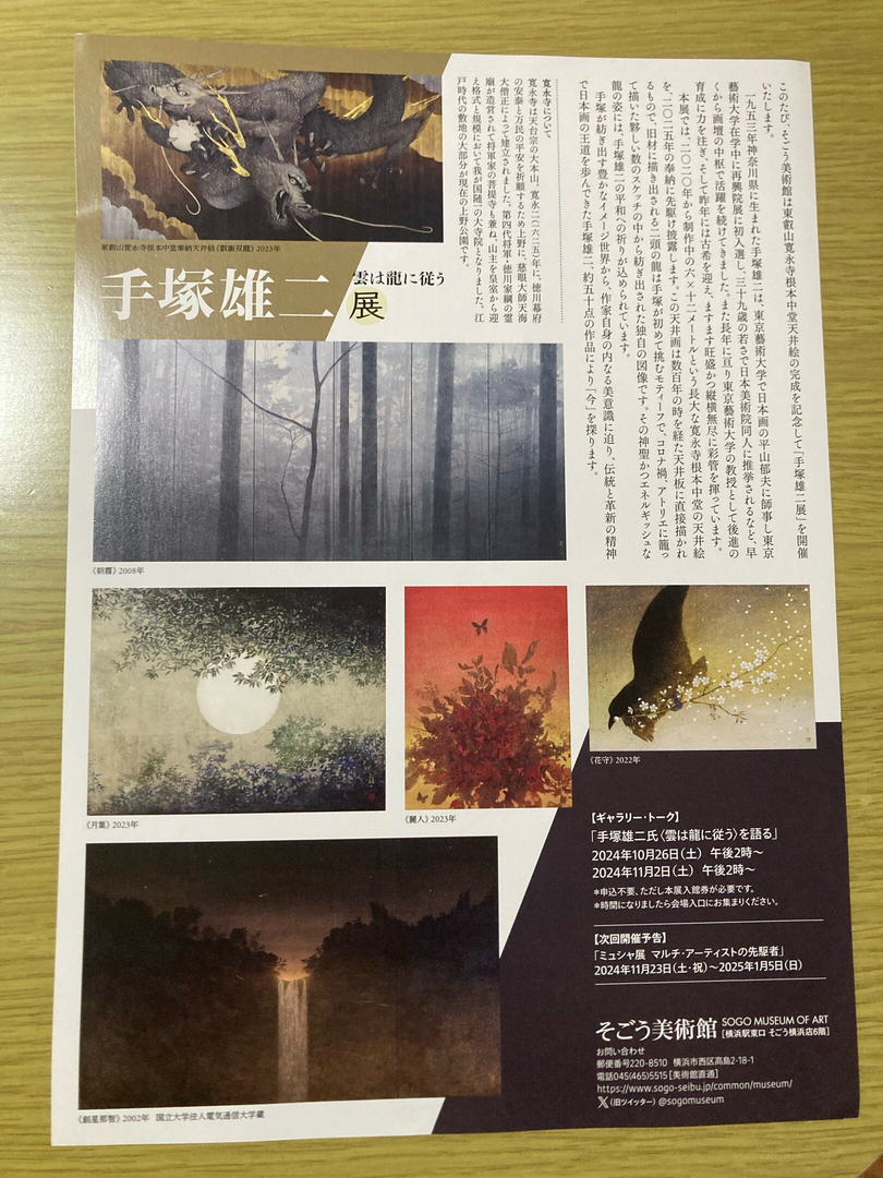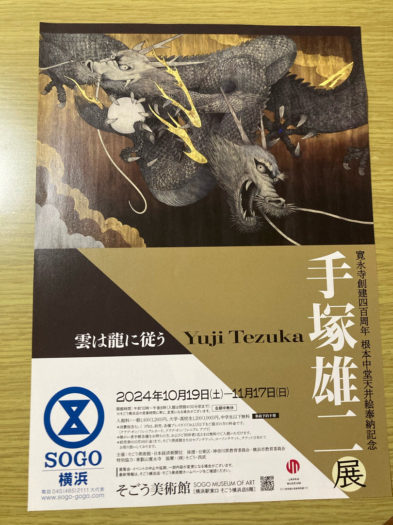 寛永寺創建400周年、根本中堂天井絵奉納記念として、横浜そごうで開催される展覧会です。約50点の絵を見ることができます。10/26、11/2にはギャラリートークのイベントも開催されます。