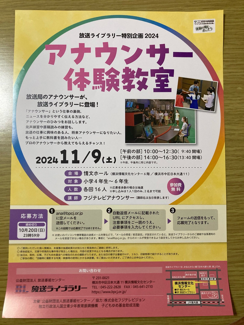 放送の仕事に興味のある人、将来アナウンサーになりたい人、もっと上手に教科書を読みたい人・プロのアナウンサーから教えてもらえるチャンス!