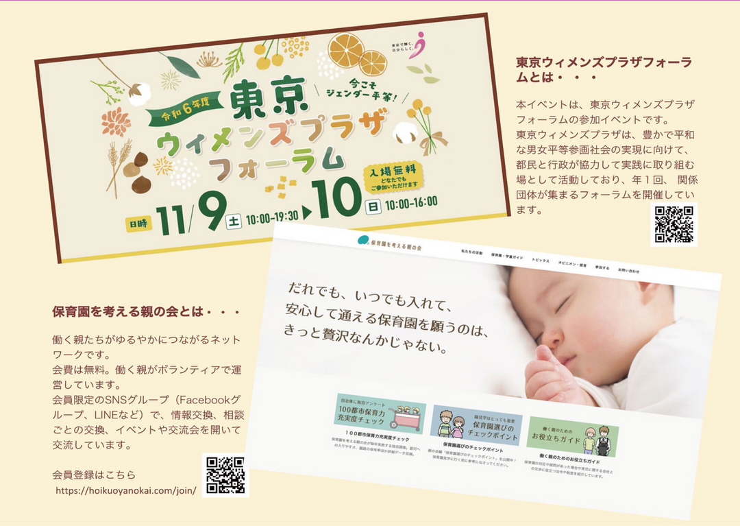 【主催】保育園を考える親の会(東京ウィメンズプラザフォーラム参加イベント)