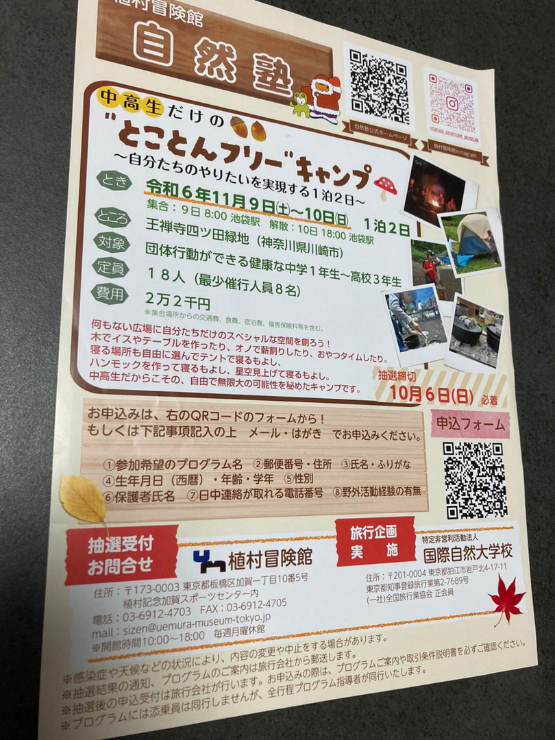 中高生だけの ”とことんフリー”キャンプ 自分たちのやりたいを実現する1泊2日