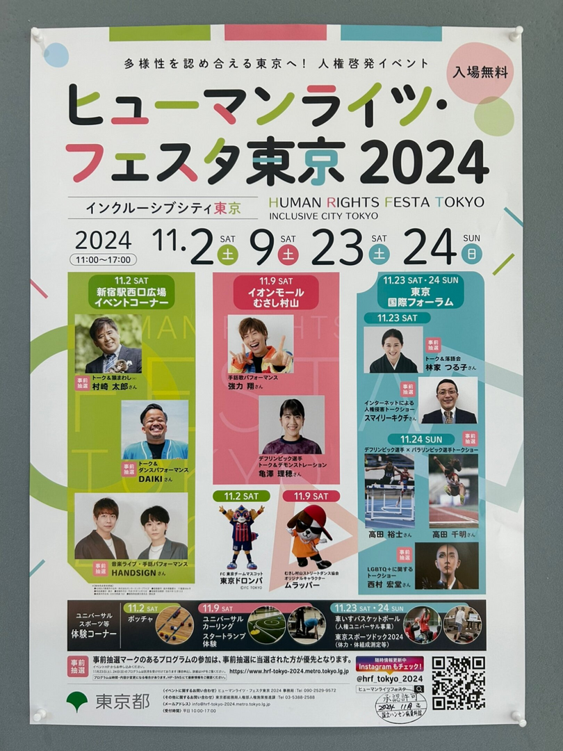 その一つとして、幅広い都民の方に、人権の大切さについて考え、理解を深めていただくため、人権啓発イベント「ヒューマンライツ・フェスタ東京2024」を開催します。