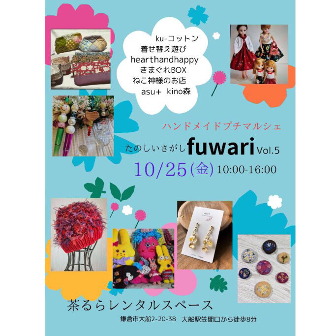 お誘いを受けてハンドメイドプチマルシェ「たのしいさがしfuwarivol.5」に参加させて頂きます!