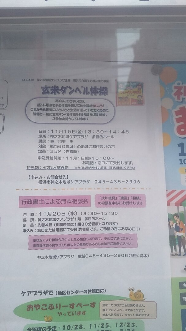 申込 神之木地域ケアプラザまで窓口、電話