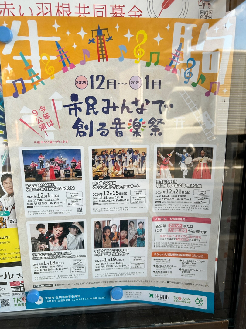 市民のみんなで企画・運営する「市民みんなで創る音楽祭」を12月から令和7年2月にかけて開催されます♪