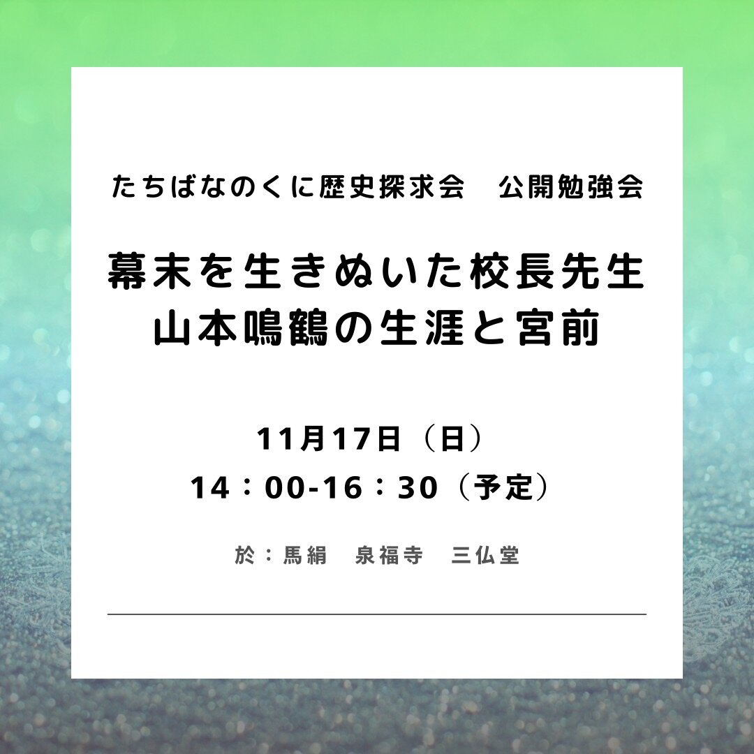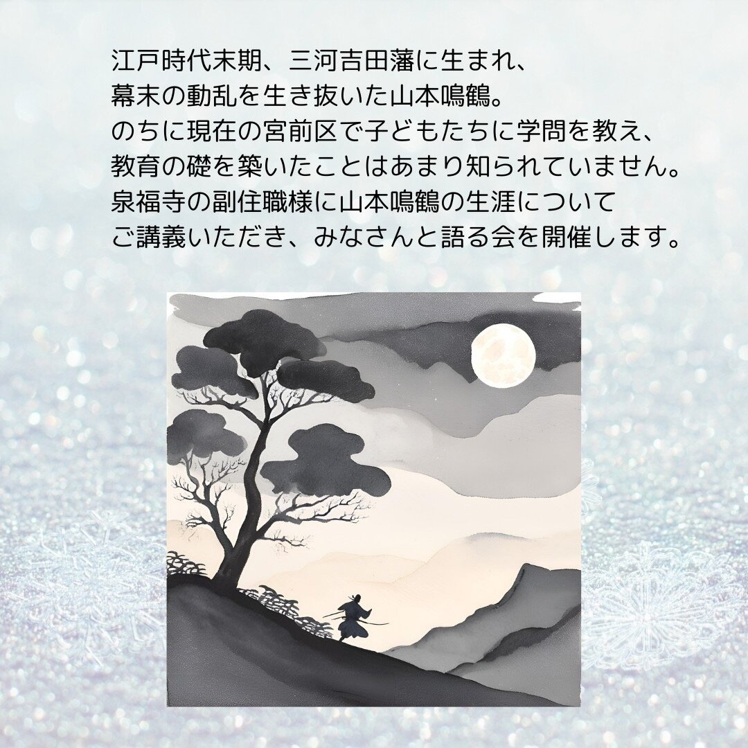 泉福寺の副住職様に山本鳴鶴の生涯についてご講義いただき、みなさんと語る会を開催します。