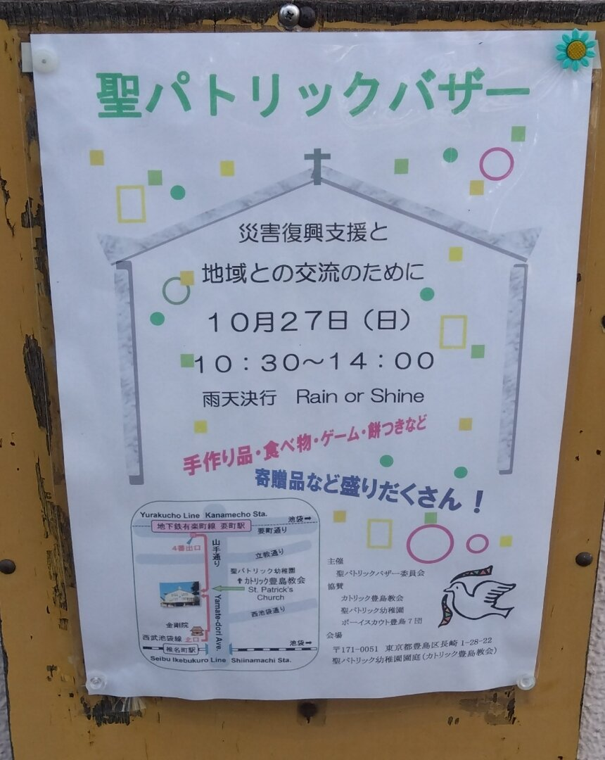 主催: 聖パトリック幼稚園、カトリック豊島教会、聖パトリックバザー委員会、ボーイスカウト豊島7団
