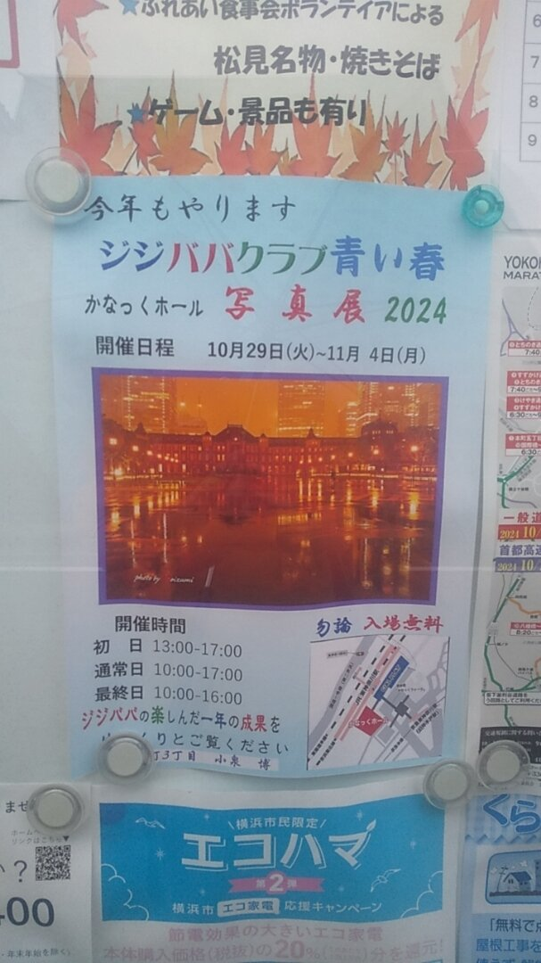 ジジババクラブ青い春 写真展が開催されます。場所はかなっくホールです。期間は2024年10月29日から11月4日までです。初日は13時から17時、通常日は10時から17時、最終日は10時から16時までです。ジジババの楽しんだ一年の成果をゆっくりとご覧ください。入場は無料です。広告の写真もとてもきれいです。時々、カナックホールでは入場無料の作品展がありますが、毎回レベルが高いです。この度、いかがでしょうか。