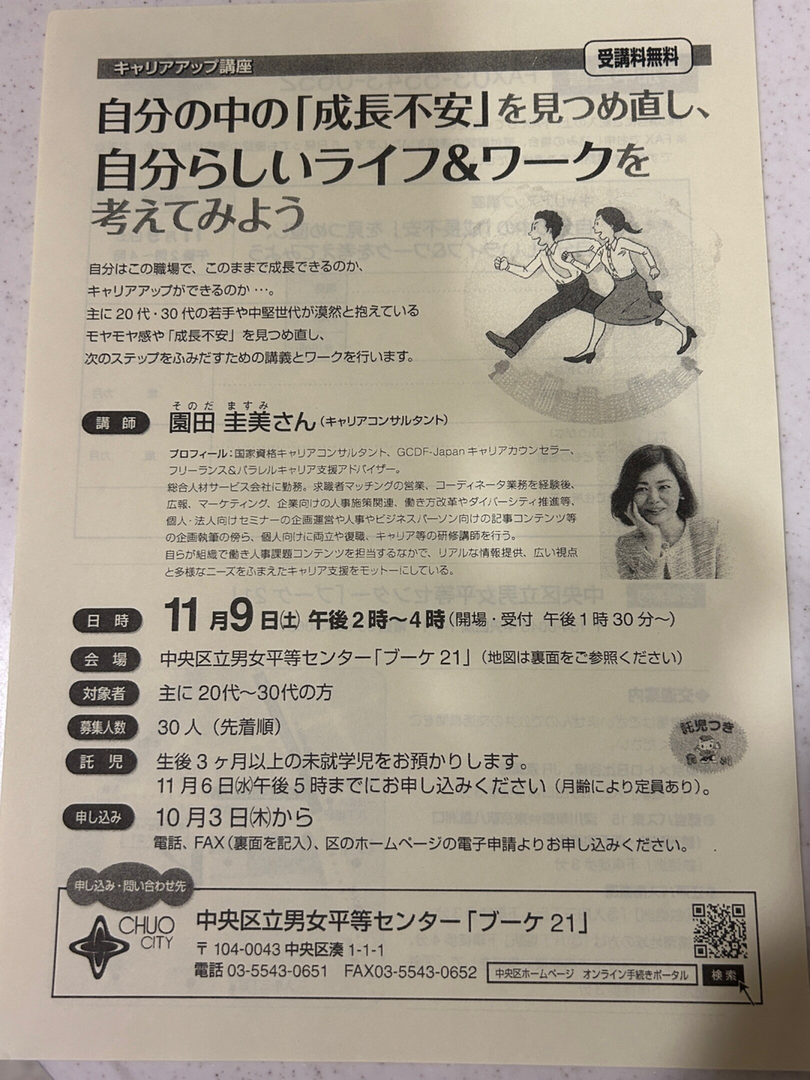 キャリアアップ講座『自分の中の「成長不安」から、新しいライフ&ワークを考えてみよう』