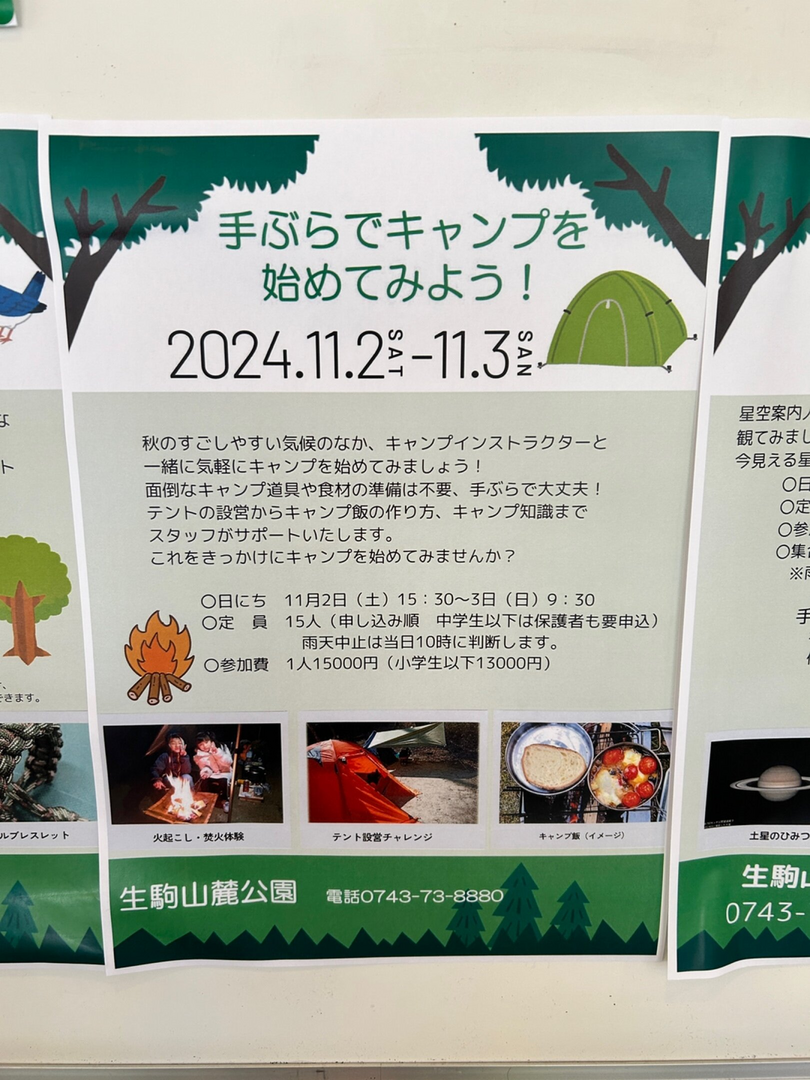 生駒山麓公園にあるキャンプ場で、キャンプインストラクターと一緒に気軽にキャンプを始められるチャンス✨