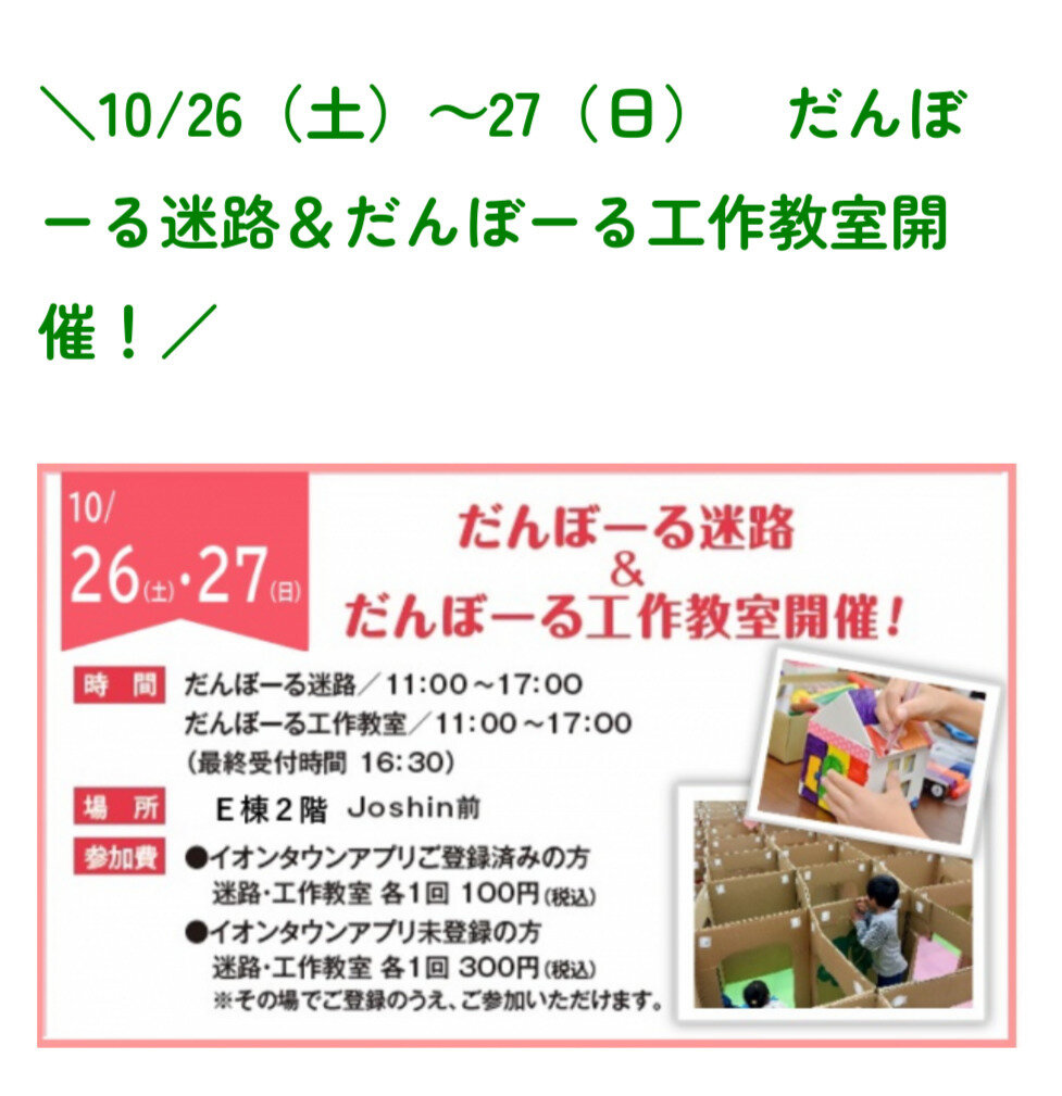 イオンタウンアプリ未登録の方 迷路・工作教室 各1回300円(税込)