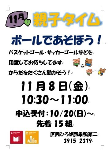 区民ひろば西巣鴨第二で『親子タイム』を開催します。