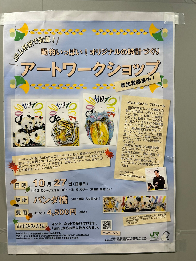 公園口に行く際に見えるかわいい壁画を手がけられているNiJi$uKe(土居虹亮)さんのアドバイスのもと、時計を作成することができます。