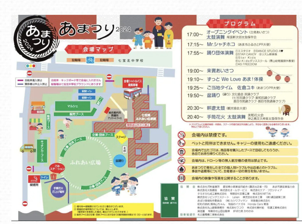 七宝焼アートヴィレッジ20周年記念事業として開催されるこのイベントでは、太鼓演舞、踊り団体演舞、盆踊り、手筒花火など盛りだくさんのプログラムが予定されています。
