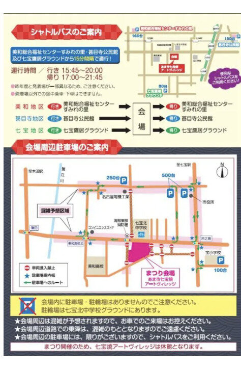 会場周辺は混雑が予想されるため、シャトルバスのご利用をお勧めします。