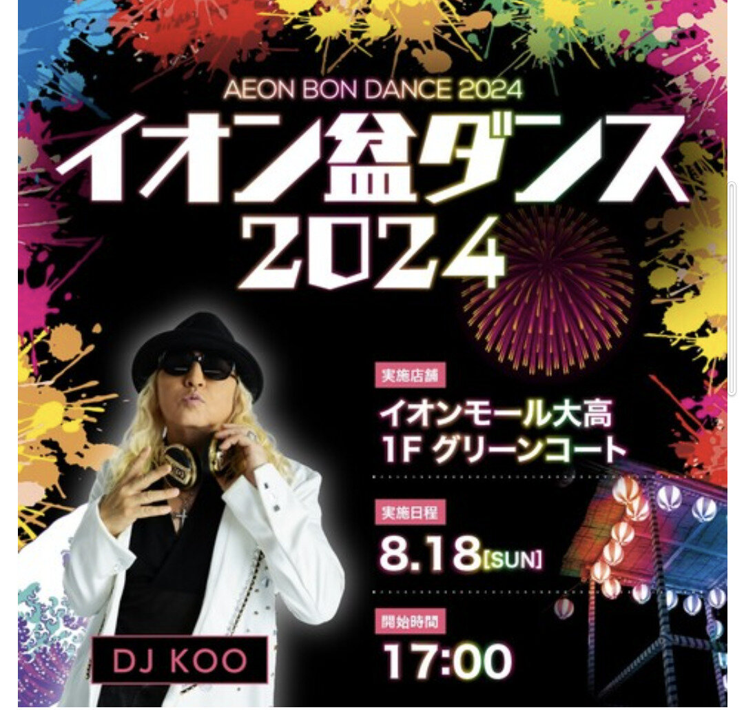 イオンモール大高でDJ KOOさんが盛り上げる盆ダンスのイベントが開催されます♪