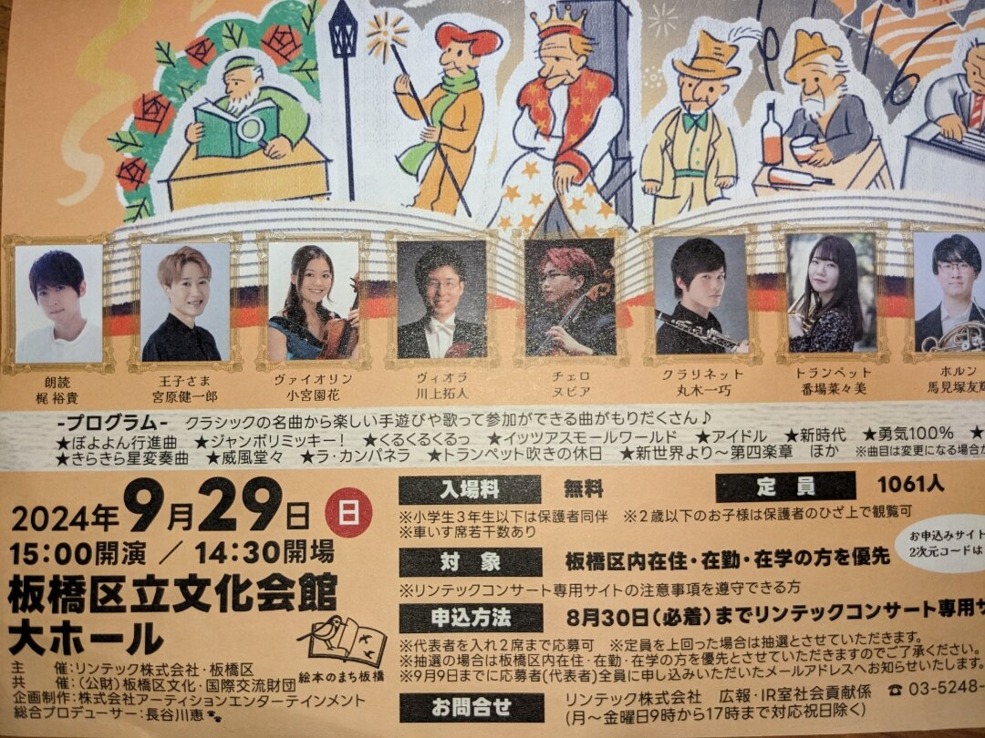 板橋区在住・在学・在勤の方優先で親子で楽しむコンサートがあるそうです♪
